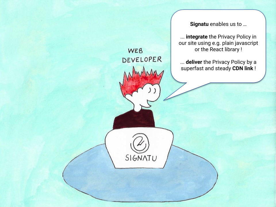 Integrate the Privacy Policy in your site using our React components, Javascript SDK, embed in an IFrame or just link it up. The choice is yours. Regardless the Privacy Policy is delivered from a fast, global Content Delivery Network (CDN).